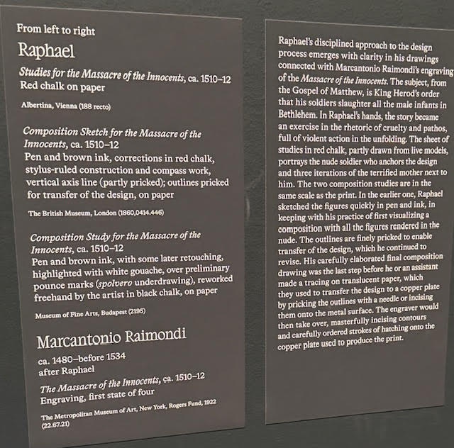(All images from Raphael: Sublime Poetry, first international exhibit of over 200 works including 170 of Raphael’s paintings, drawings, etchings, and tapestries at the Metropolitan Museum of Art in New York).