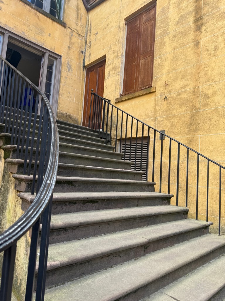 The first few photographs are of a pre-Civil War house, the Aiken-Rhett, which has been preserved ” as is”. We see slave quarters and the owners drawing rooms and public spaces. The stables have the original carriages. The household split politically over the Civil War.