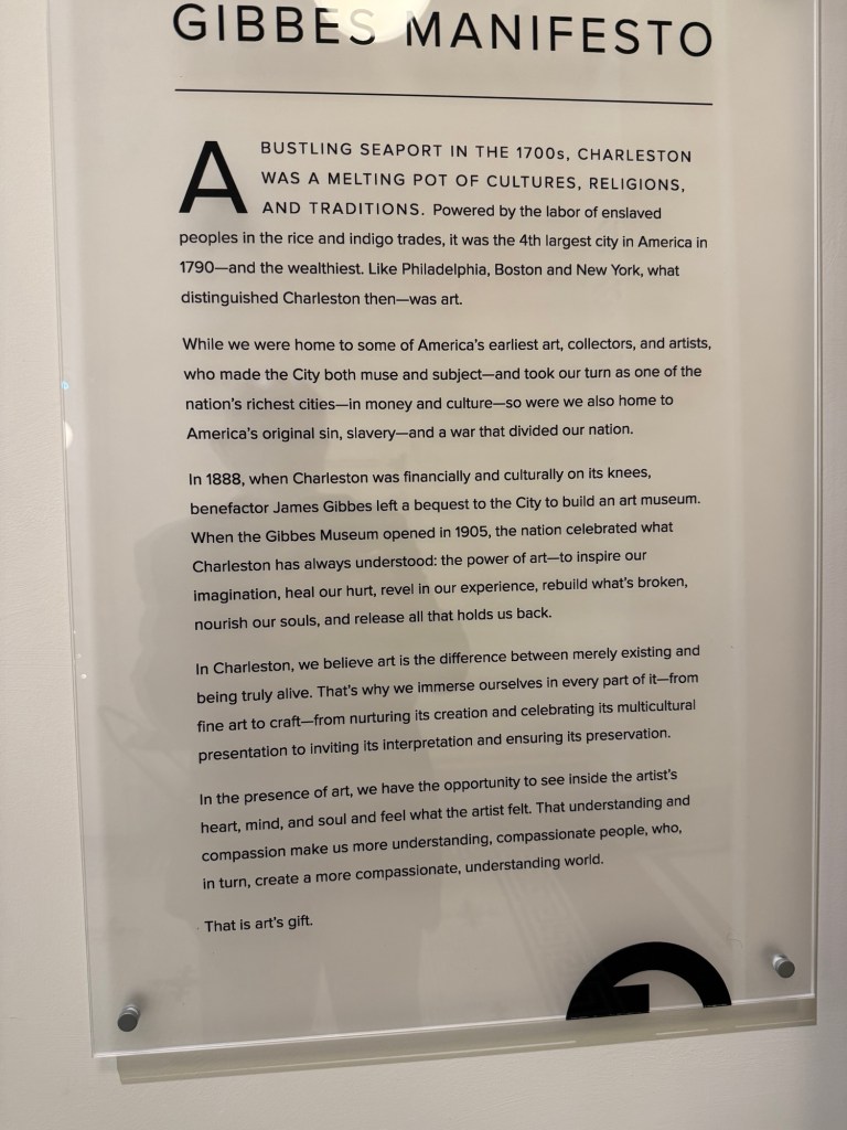 Charleston was the pre-Civil War “capital” of slavery. All its wealth came from forced labor. The conditions with possible exceptions were titanically horrendous and inhumane. Slavery in the 18th and 19th century was unimaginable. I’ve never been to an European concentration camp. Very decidedly. Humans treating other humans in barbaric fashion makes me squeamish. And so it is with slavery. The old Slave Market in the heart of this city was demolished in the Union shelling during the Civil War. In its place is a museum that provides written descriptions and some first-person accounts. That was enough for me. This raises enormous questions about American society today. For that we need another forum. I’m glad I came and cannot imagine what people descended from slaves must feel.